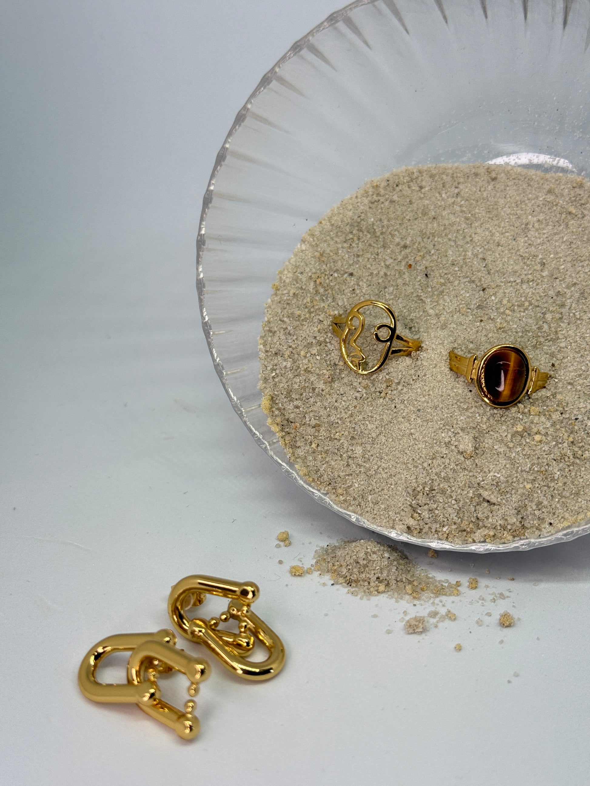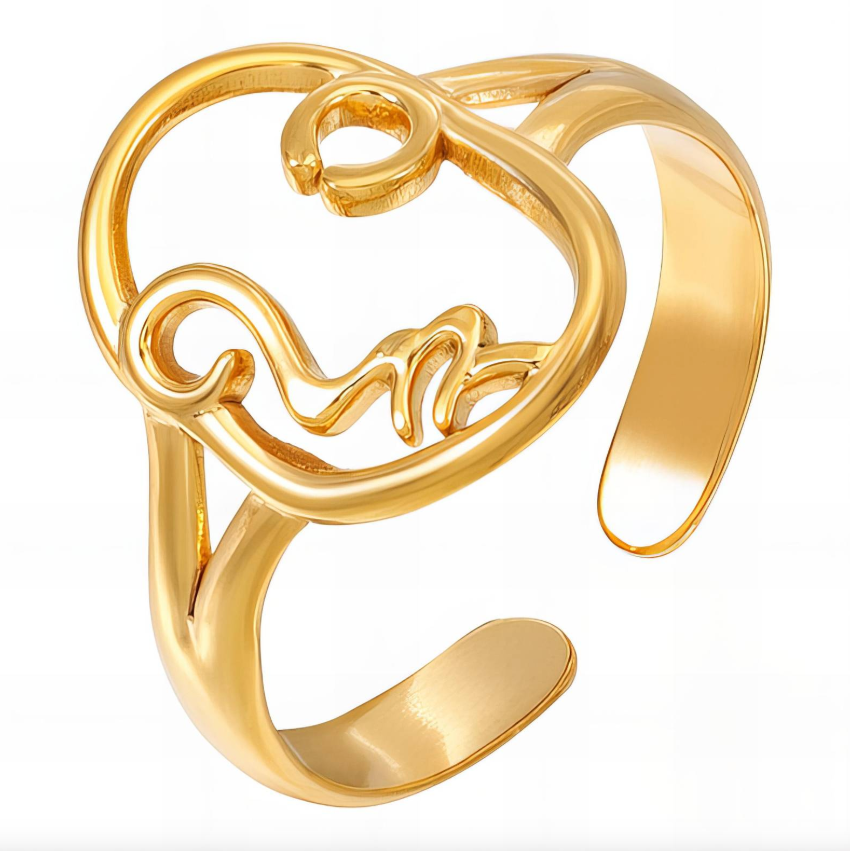 This adjustable 18k gold-plated ring features a unique, minimalist face design, adding an artistic and modern touch to your jewelry collection. The sleek, polished band ensures a comfortable fit, while the striking face detail serves as a bold statement piece. Perfect for those who love to blend elegance with individuality, this ring is both versatile and eye-catching.