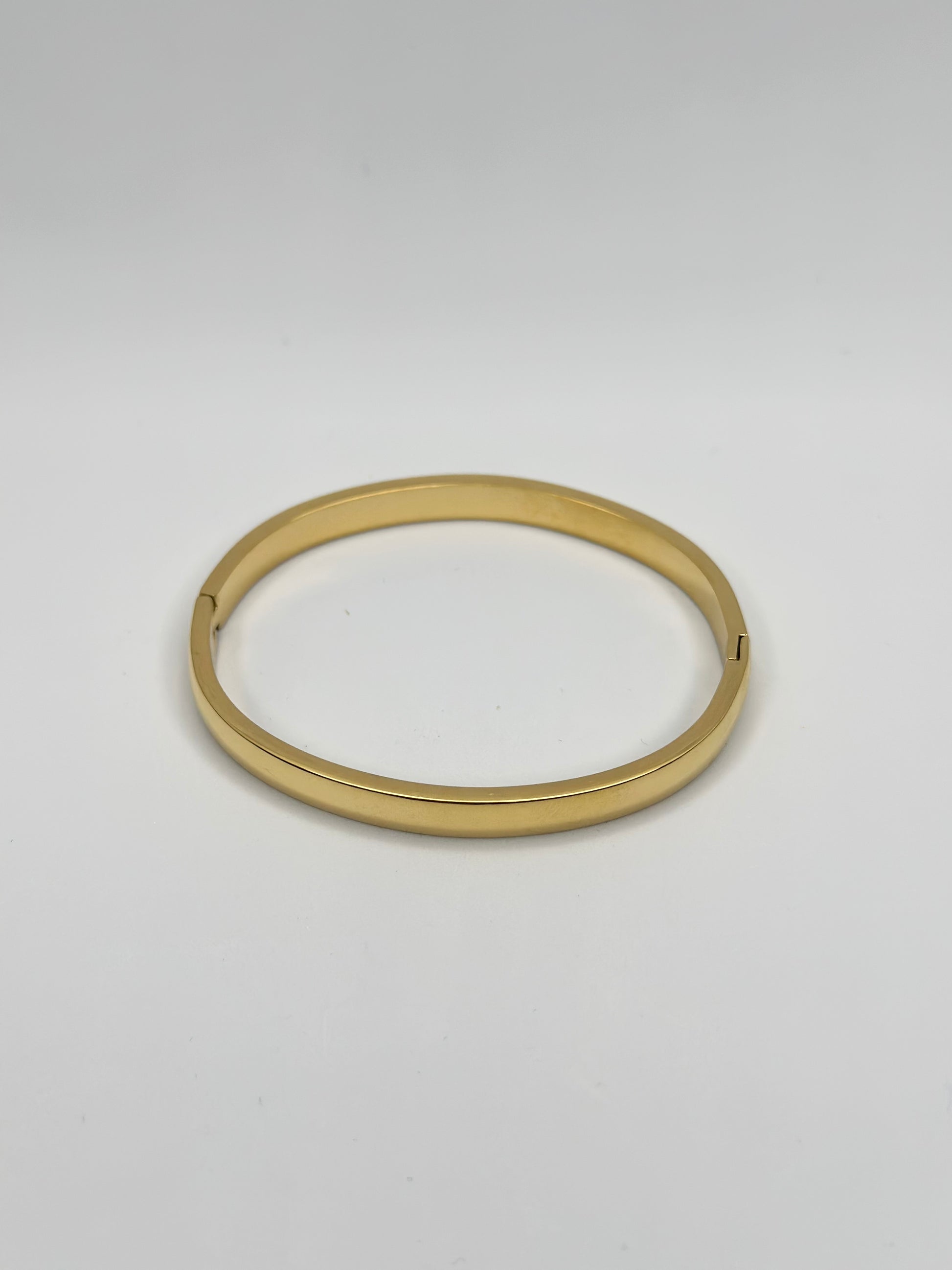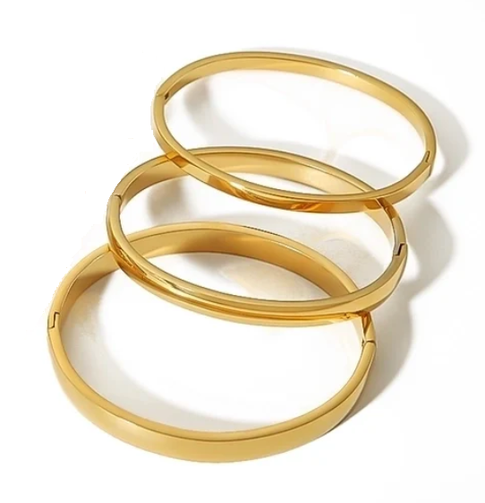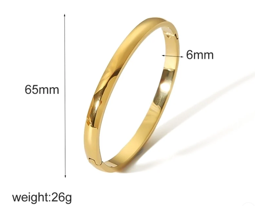 The Thick Destiny bangle is a sleek and elegant piece from the Destiny 3-piece set. Crafted with a high-shine 18K gold-plated finish, it measures 65mm in diameter and 6mm in width, with a lightweight feel at 26g. Perfect on its own for a subtle statement or stacked with the thicker bangles from the set for added impact, this bangle offers timeless versatility and everyday sophistication.