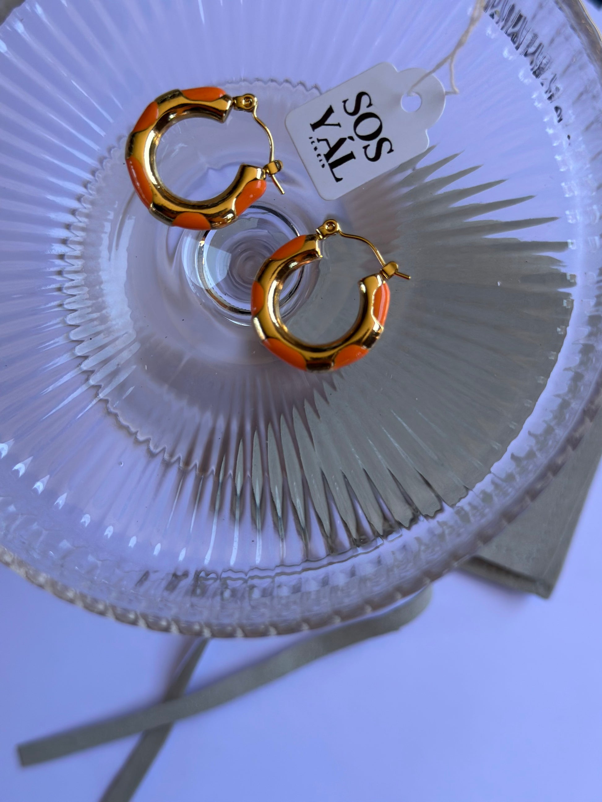 Add a vibrant touch to your accessory collection with these stunning Fruity Loops earrings. Crafted from high-quality materials and finished with a luxurious gold plating, these hoops feature a unique bamboo-inspired design accented with a bold pop of orange. Perfect for elevating everyday outfits or making a statement at special events, these earrings are lightweight, durable, and designed to stand out. Bring a playful yet elegant flair to your style with Fruity Loops!